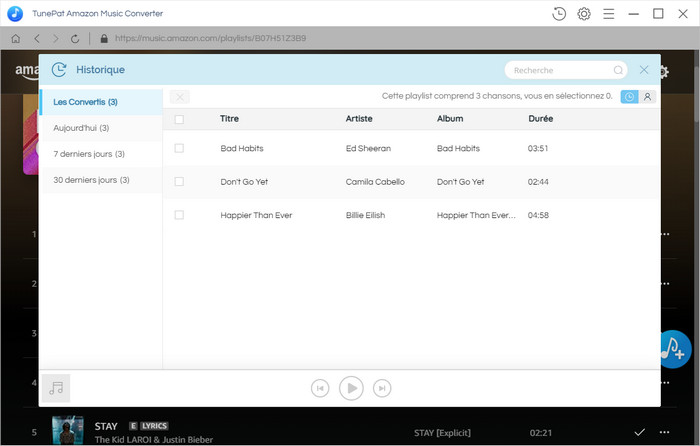 Remarque: La version d'essai gratuite de TunePat Amazon Music Converter vous permet de convertir la première minute de chaque chanson et de convertir 3 fichiers musicaux à la fois. Vous pouvez déverrouiller la limitation de temps en achetant la version complète.