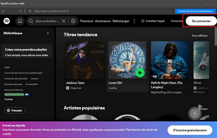 Étape 1 Démarrez TunePat Spotify Converter sur votre PC. Le programme vous propose Spotify APP et Spotify lecteur web, ce qui vous permet de basculer librement entre ces deux modes. Si vous optez pour le lecteur web, cliquez simplement sur Ouvrir le lecteur Web ou Ajouter pour y accéder, puis connectez-vous à votre compte Spotify en suivant les instructions affichées. Ne vous inquietez pas, TunePat ne collecte aucune information de votre compte.